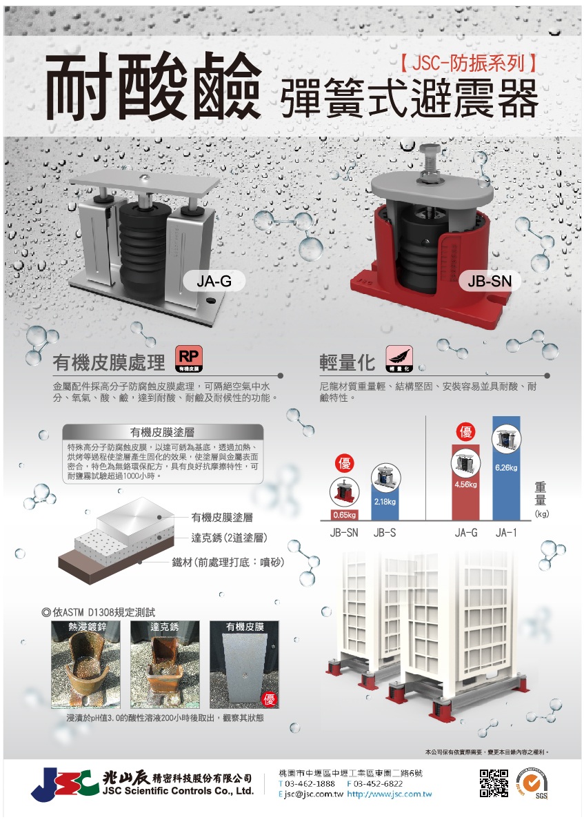 JSC提供三種類型的產品:包含有機皮膜表面處理,尼龍補強纖維材質,全不鏽鋼避震器來因應客戶需求。