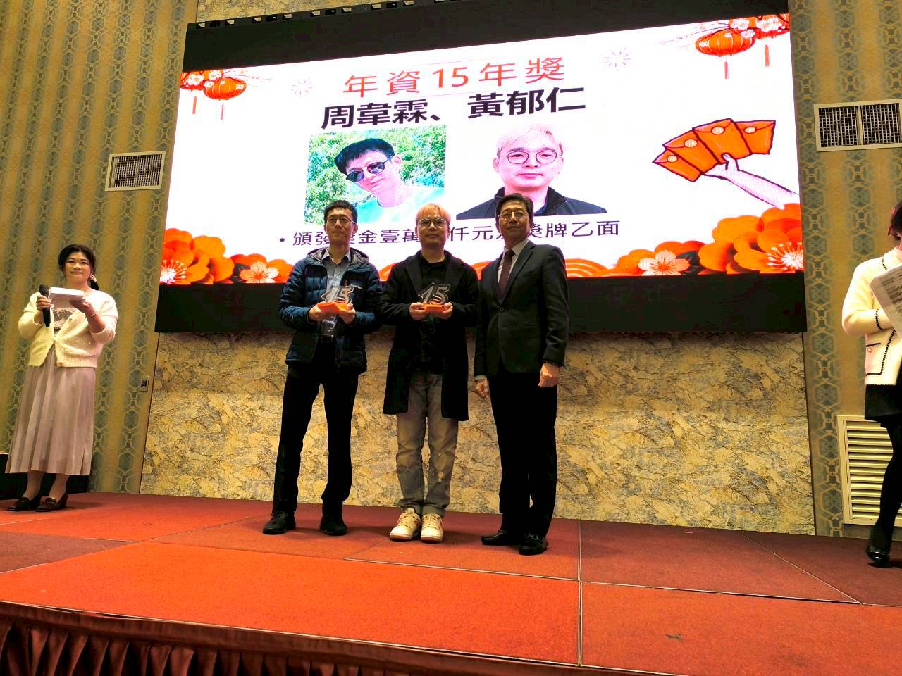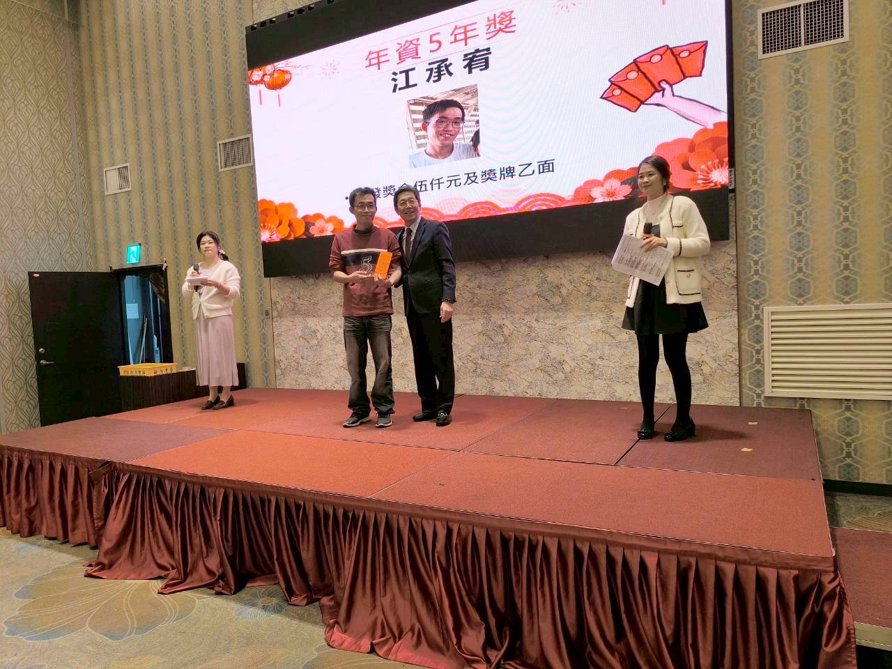 同時對年資滿5年/10年/15年的員工,給予公開表揚及鼓勵。